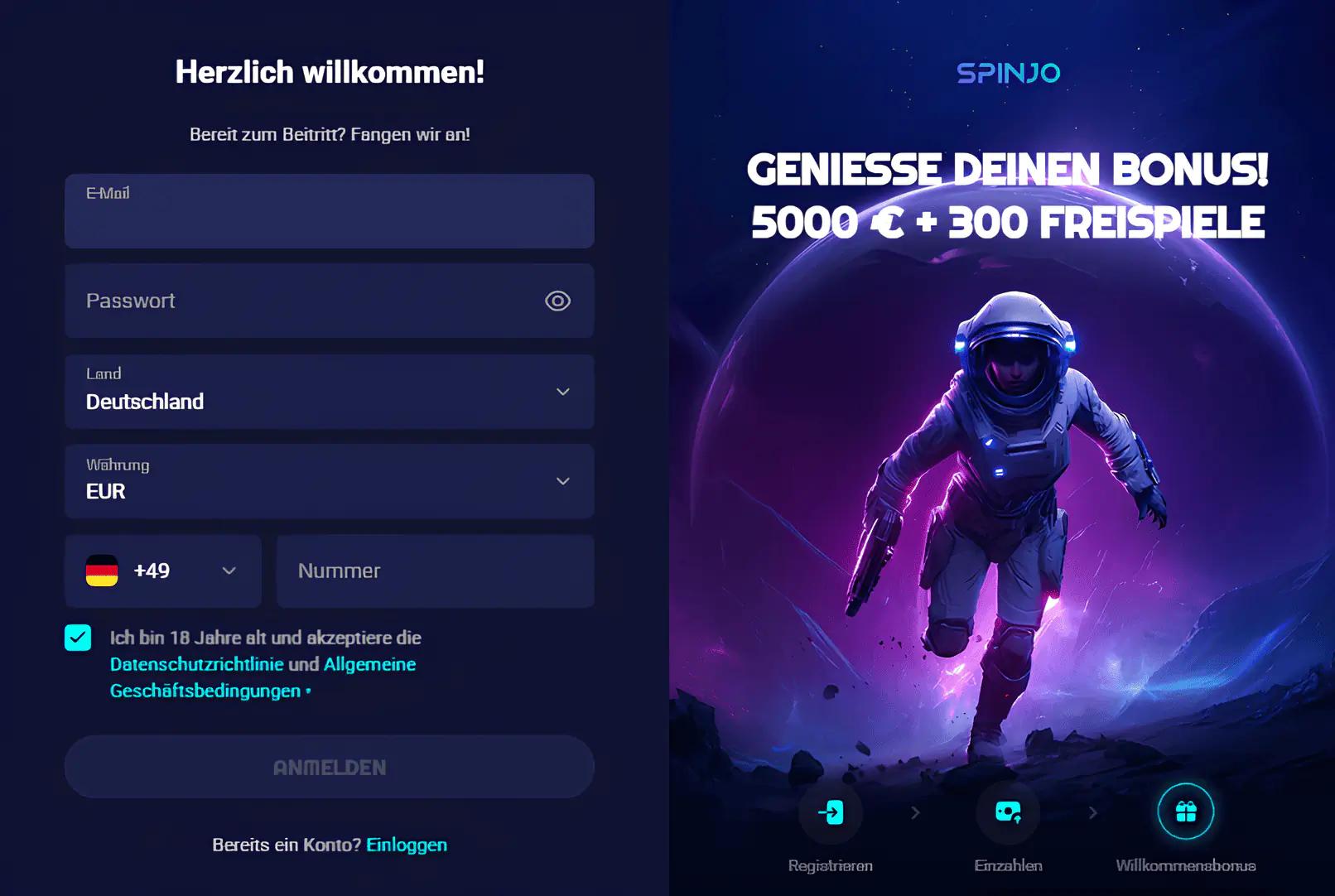 Anmelde- und Registrierungsprozess bei Spinjo Casino